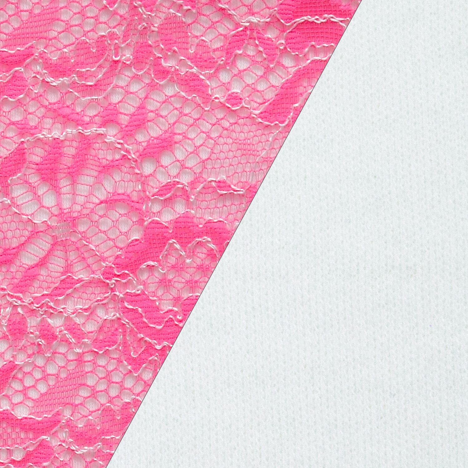 表地はしなやかで鮮やかなホットピンクに白糸のお花柄のレース生地です。