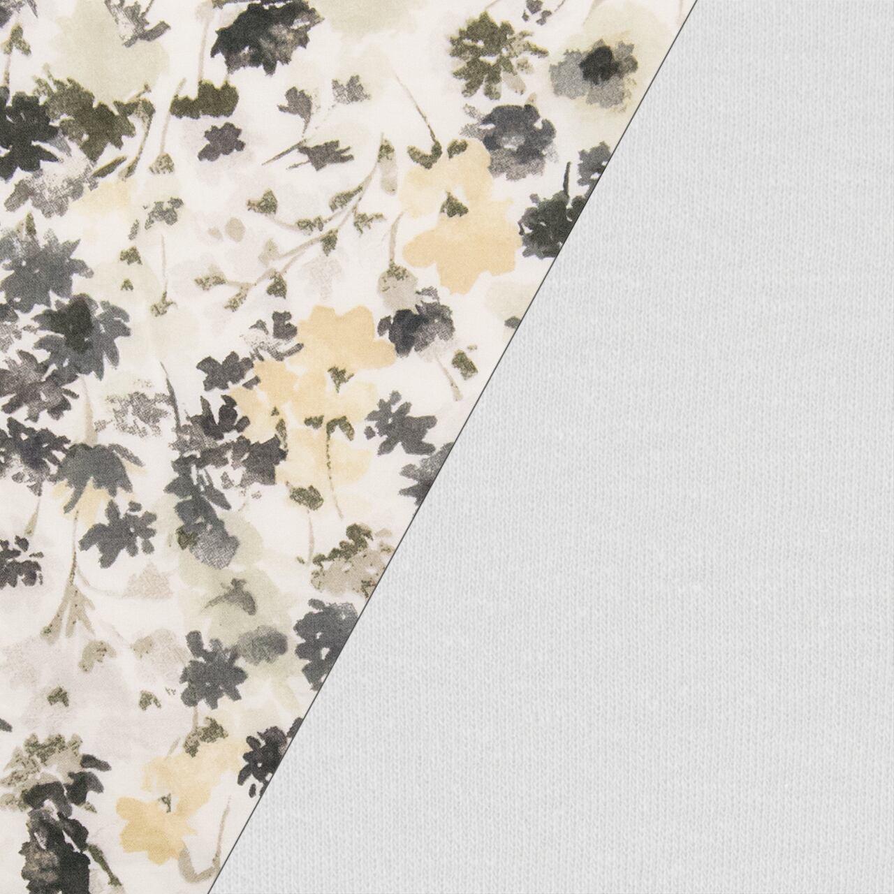 表地は水彩タッチで描かれた柔かなお花柄で、薄手で密度の高い60ローンというコットン生地です。