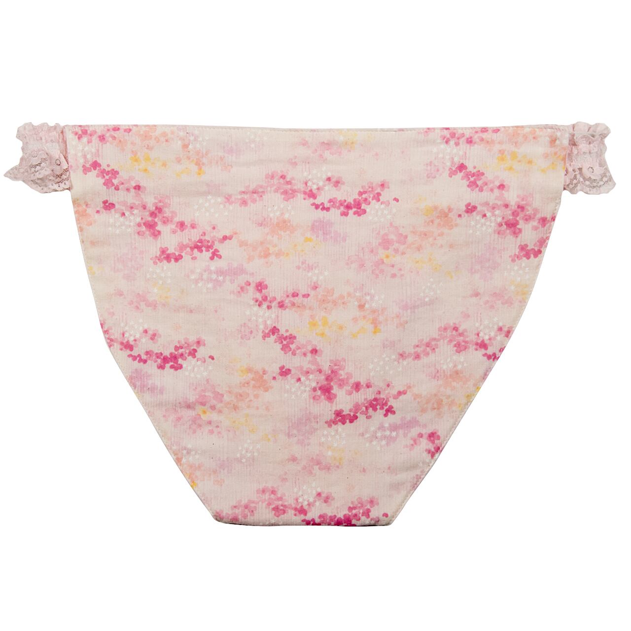 表地は水彩タッチで描かれたグラデーションのようになっている小花柄でうっすらとストライプも描かれています。柔らかで温かみのあるダブルガーゼコットン生地です。